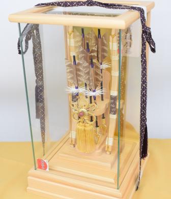 檜には、効能として、芳香による癒し・リラックス効果、抗菌・消臭作用があります。 当店の総檜造り破魔弓は、製材の際に木の節の部分は使わず、美しく見える部分だけを贅沢に使用しています。 破魔弓は、もともと四方を射って魔を鎮める神事を基としており、原型は鎌倉時代から続く縁起物です。 ハマ(的)から"破魔"になり、江戸時代には現代のような形に近づきました。 主に男の子が初めて迎えるお正月に飾る縁起物やお守りとして贈られます。
