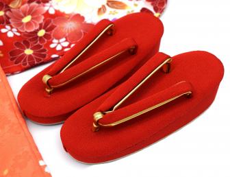 ✔ 草履(赤 × ゴールドの鼻緒)