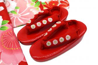 ✔ 草履(赤 × 花飾り付き)