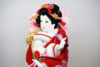 深みのある赤と白の衣裳が華やかに映える、正絹仕立ての押絵羽子板です。 赤は魔除け・生命力、白は清らかさ・純粋を表し、 新しい一年を健やかに過ごせるよう願いを込めたお正月飾りです。 桜と梅の花柄は「希望」と「繁栄」を象徴し、 お子さまの成長をやさしく見守ります。 優しい表情と艶やかな紅の彩りが、お祝いの席を上品に彩る一品です。 間口×奥行×高さ(cm):15×16×37