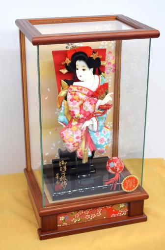 お顔は白肌で優しい表情の美人仕上げ。初正月を迎えるお子様の健やかな成長と幸福を願う、飾りものとして最適です。背景には桜が舞う絵柄を配し、羽子板の華やかさがより一層引き立つデザインとなっています。